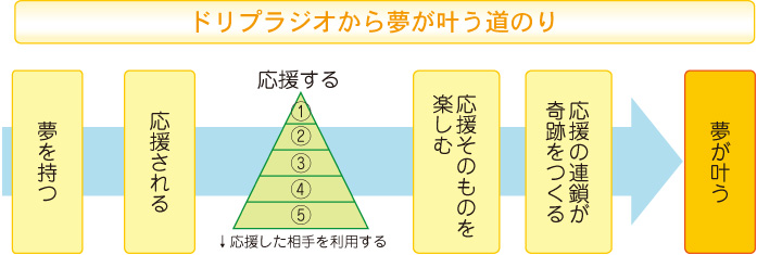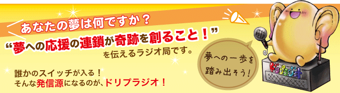 ドリプラジオは『夢への応援の連鎖が奇跡を作ること!』を伝えるラジオ局です。